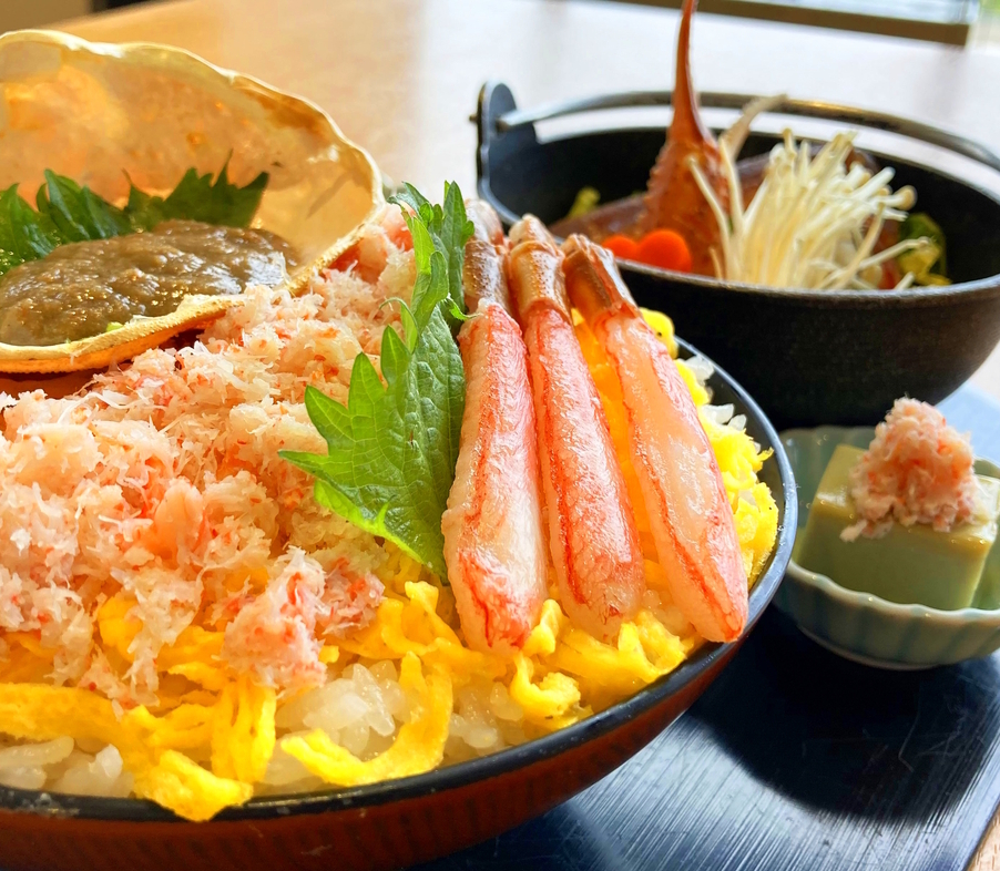 カニの身をふんだんに使った御当地バーガー《かにかにバーガー》と、鳥取県産二十世紀梨を使用した《梨ジュース》の、砂丘センター見晴らしの丘でしか食べられないセットです